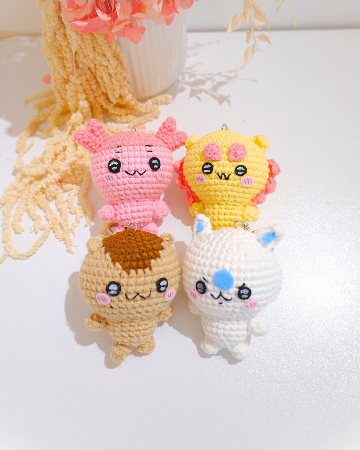 Brighten your day with these adorable handmade crochet keychains! Each piece is lovingly crocheted by hand in New Zealand, crafted with high-quality yarn, safe stuffing, and made to bring a smile wherever you go.