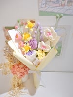 A soft, joyful bouquet of hand-crocheted blooms in buttery yellow, blush pink, lilac, and creamy white. Each flower is carefully stitched to capture the warmth of a spring garden that never fades—symbolising gentle love, hope, and new beginnings. Wrapped in light pastel tones and finished with a delicate ribbon, Garden Promise is a keepsake bouquet made to be treasured long after fresh flowers would have wilted. Perfect for birthdays, graduations, thank-yous, or simply to brighten someone’s day 🌼✨