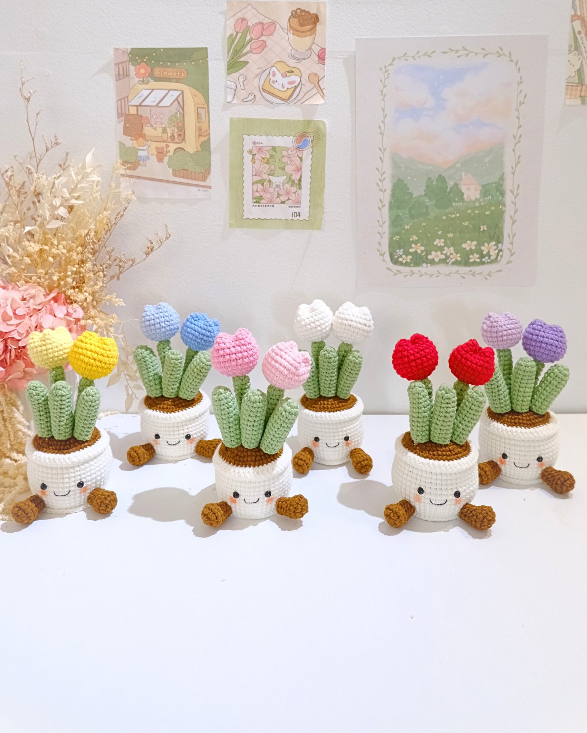 Soft, sweet, and full of charm — this crochet tulip pot is inspired by the beloved Jellycat! A perfect forever tulips pot to brighten up your space or gift to someone special.