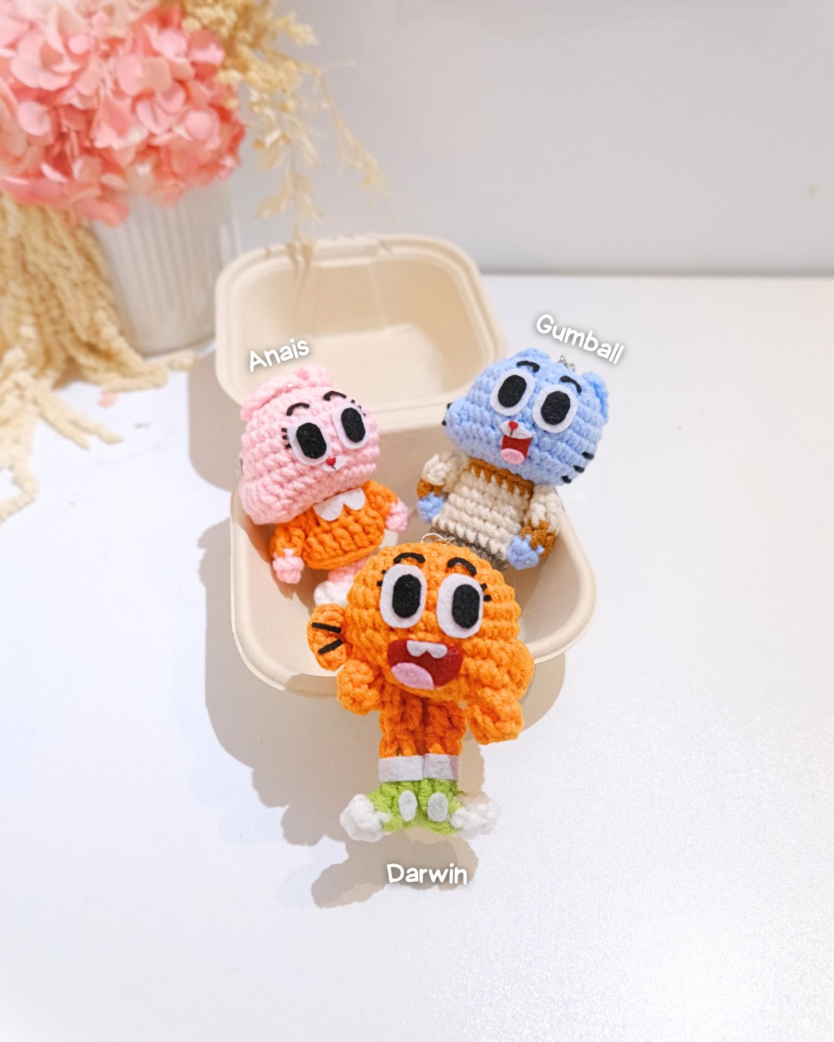 Each plush is lovingly handmade with premium cotton yarn, featuring vibrant colors and expressive faces that perfectly capture their playful personalities. Whether you’re a fan of The Amazing World of Gumball or just love cute handmade collectibles, these three are sure to brighten your day!